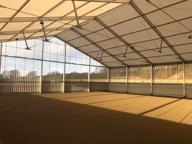 Vi producerar ridhallar med stomme i aluminium och stålprofiler och bredder upp till 30 meter. Hallarna byggs i sektioner, vilket gör dem enkla att anpassa eller förlänga vid behov. Väggar kan utföras i PVC, fasadplåt eller sandwich, med val av isolering och ventilationslösningar.