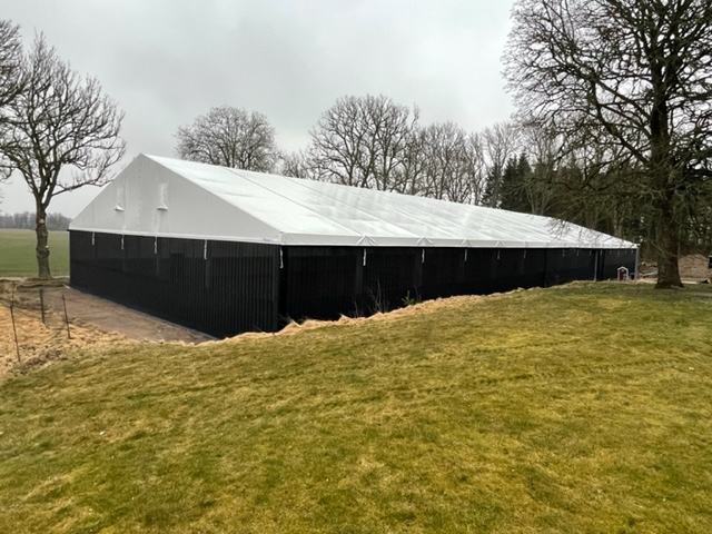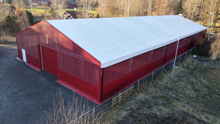 Vi producerar ridhallar med stomme i aluminium och stålprofiler och bredder upp till 30 meter. Hallarna byggs i sektioner, vilket gör dem enkla att anpassa eller förlänga vid behov. Väggar kan utföras i PVC, fasadplåt eller sandwich, med val av isolering och ventilationslösningar.